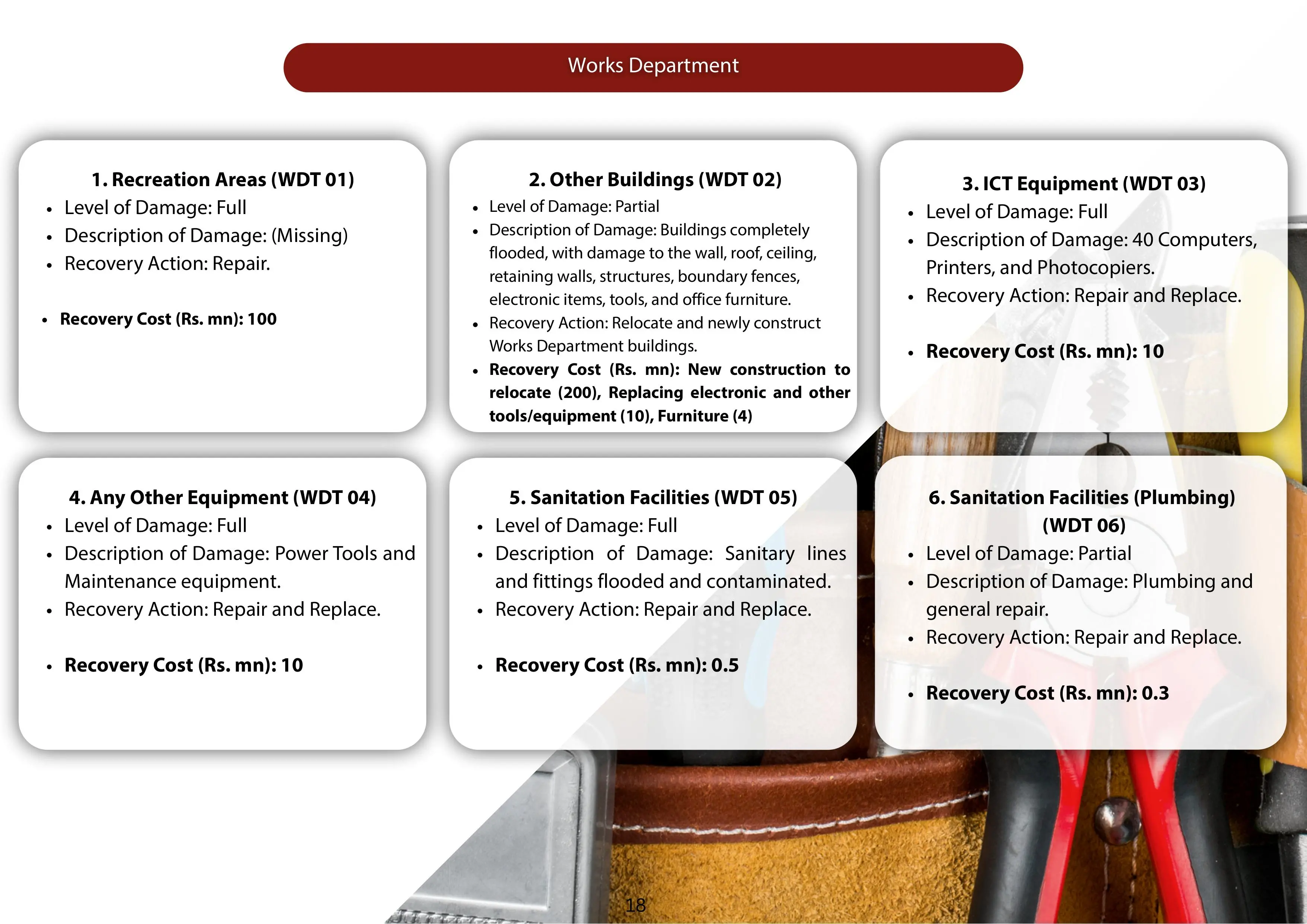 Details regarding the total cost for each sub-project are as follows: